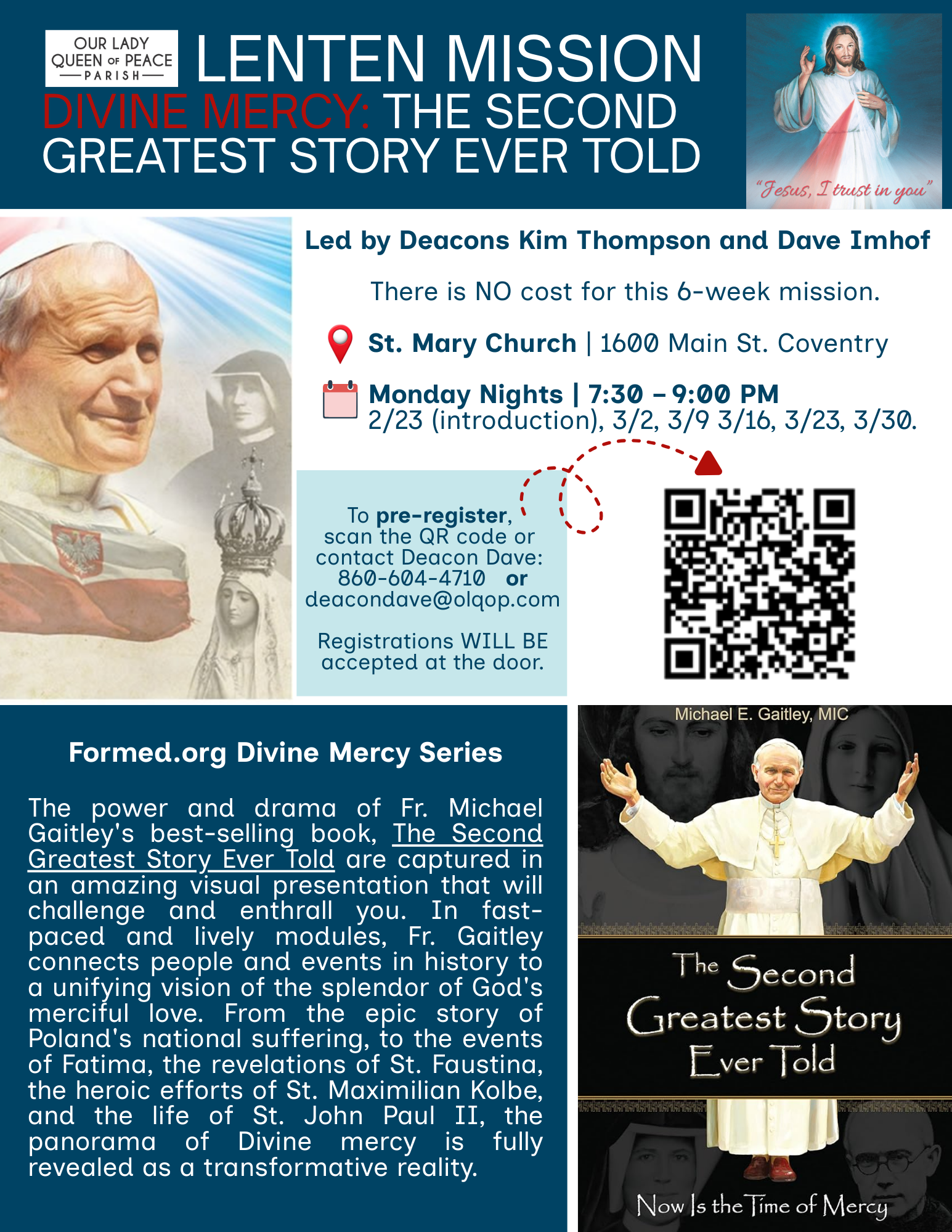 Please join us at our upcoming parish events! Questions? Please call the office at 860-742-0681.